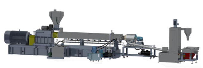該系統(tǒng)通常包括模頭,切粒小車,旋風分離、振動輸送等。